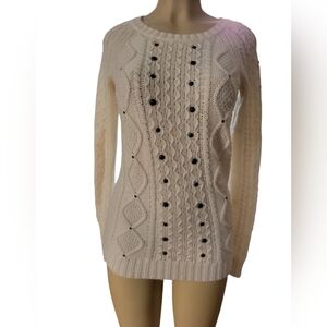 Stylish bikini set with a floral pattern. Features red and blue accents on a white base. Perfect for a beach day.