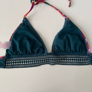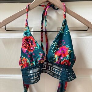 Xhilaration Floral Crochet Long Line Triangle bikini top swimsuit size large