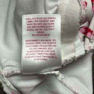 Special Features: Smoke free / pet friendly home. One piece with stomach cut out. Padded cups have been removed and are not included, but can be inserted if you have them. Non-adjustable straps. Cinched detail between the bust.