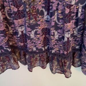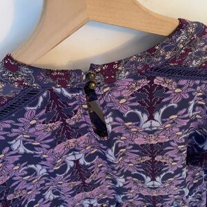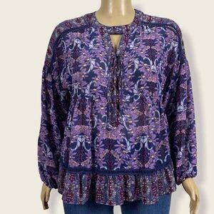 Xhilaration Purple Blue Floral Long Sleeve Peplum Peasant Boho Shirt Top