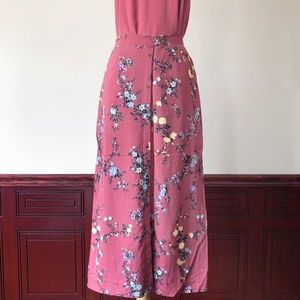 Floral pattern maxi skort with buttons down the front and elastic waist. NWOT, never worn.