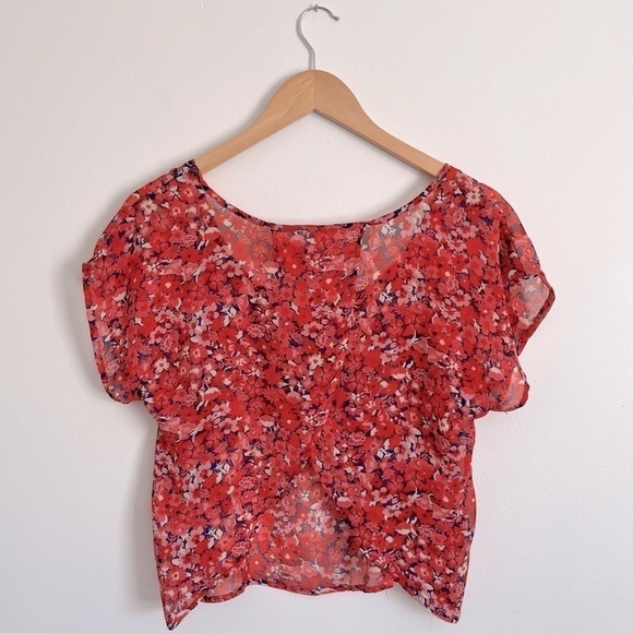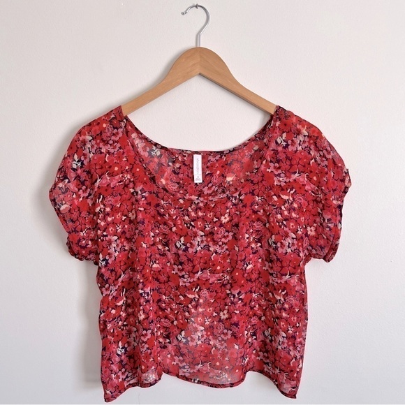Xhilaration Floral Open Back Short Sleeve Blouse