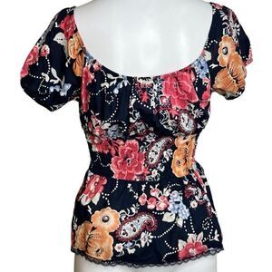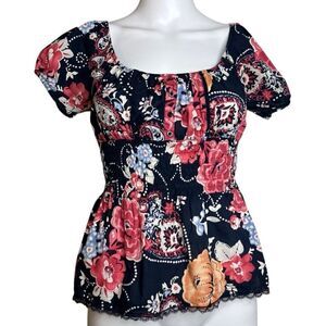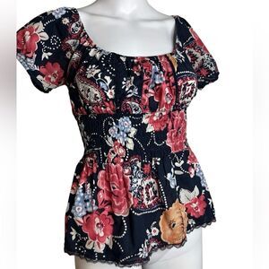 Xhilaration Floral Paisley Peplum Top Blue and Red Size XS