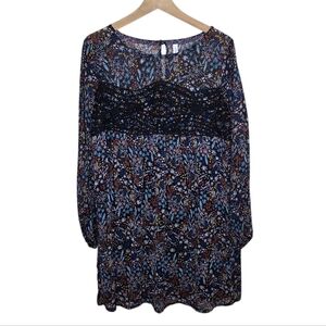 Xhilaration | Floral Print Boho Dress Crochet Lace Front Sheer Upper & Sleeves