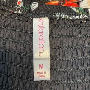 Xhilaration Floral Print Mini Dress Black Red White Square Neck Strappy Ruffle M