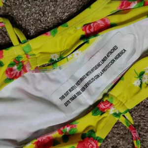 Xhilaration Floral Ruffle Yellow bikini, NWT. This is a Two piece set, with a pushup style top. women's size Large. Questions welcome!