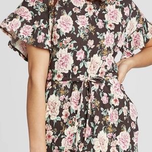 Xhilaration Floral Short Sleeve Tie Waist Dress