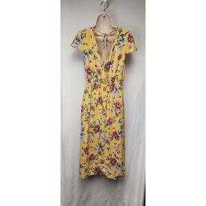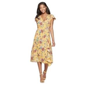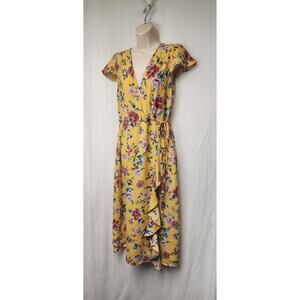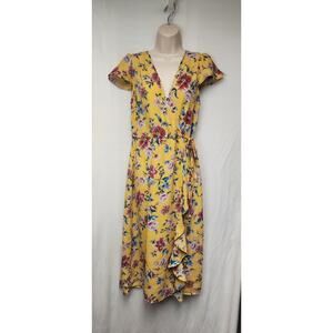 Xhilaration Floral V-Neck Midi Faux Wrap Dress Multicolor Yellow Size Medium.