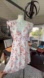 Chic floral wrap dress with ruffle details. Soft cream and pink tones. Ideal for casual elegance.
