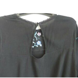 Xhilaration Flower embroidered Black Peasant Top