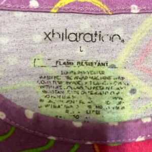 The Xhilaration Girls' Pajama Dress in a delightful purple hue is perfect for cozy nights and lazy mornings. Adorned with charming frog and heart prints, this short-sleeve pajama dress is both fun and comfortable. Made from flame-resistant material, it ensures safety while your little one dreams away. Plus, it's machine washable for easy care. There is mild piling and a stain on the front as pictured, but it still offers plenty of wear and comfort.