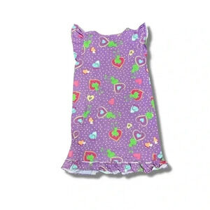 🌟 Xhilaration Girls Pajama Gown L Purple Frog & Heart Print Short Sleeve 🌟