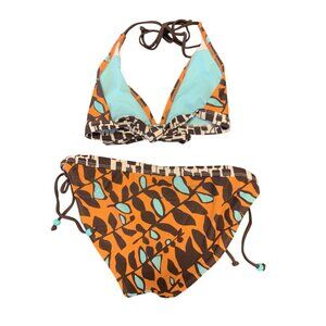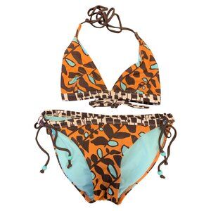 Xhilaration Halter Bikini Two Piece Leaf Print Orange & Brown Size M