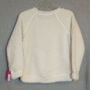 Xhilaration Happy Hanukkah White Cream Sherpa Pullover Sequins Juniors L NWT