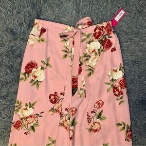 Xhilaration Harem/Boho Floral Pants- Rose and peony floral pattern on pink background. Wide semi sheer leg pants with high side slits on both sides and shorts under. Tie front. Elastic waistband on back. Light weight fabric, Never worn, brand new. Size XXL, since it ties up it can be adjusted. Pet and smoke free home.