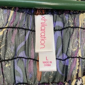 Xhilaration High Low Shear Tunic Top SZ L Empire Waist Multicolored Pattern