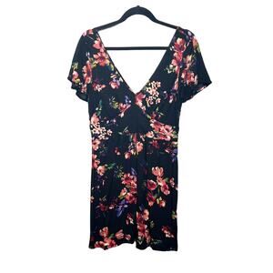 Xhilaration High Waisted Floral V-Neck Short Sleeve Dress Juniors Large Pullover