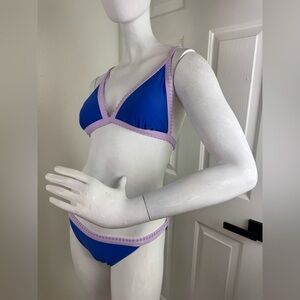 Xhilaration Junior Blue Stitched Trim Triangle Cheeky 2 Piece Swimsuit Medium.