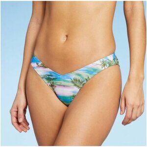 You'll be ready for summer fun with the High-Leg V Cheeky Bikini Bottom from Xhilaration. This high-rise swim bottom is made of a soft and stretchy fabric with full lining to let you move confidently in and out of the water. The V-waist bikini bottom is adorned with green tropical imagery on a soft-hued multicolor background for vibrant vibes, and is designed with a cheeky, high-leg cut that lets you flaunt your summer sass for a day by the pool or sunbathing on the beach. Style with a matching top and statement shades for the perfect poolside look.