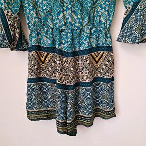 Xhilaration Juniors Short Romper Print Multicolor Size Small Long Sleeve