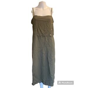 Xhilaration Juniors Size XL Midi Dress Olive Green Cinch Waist Strappy Pockets
