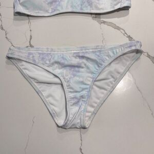 Beautiful White Swimsuit with Soft Blue and Purple Tie Dye Colors