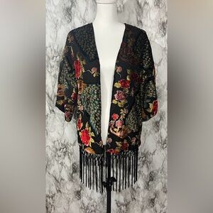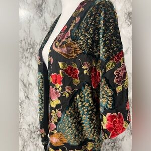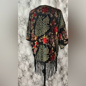 Xhilaration Kimono Floral Peacock Burnout Velvet Tunic Beach Cover Up X…