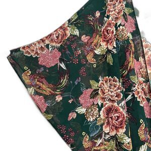 Xhilaration Kimono Green & Pink Floral Bird Sheer Long Split Sides Women sz XS/S