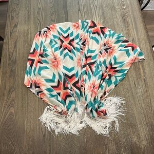 Xhilaration Kimono Top Open Front Lightweight Geometric Print Green Size S/M