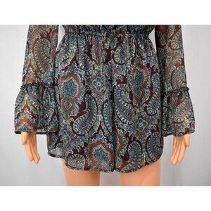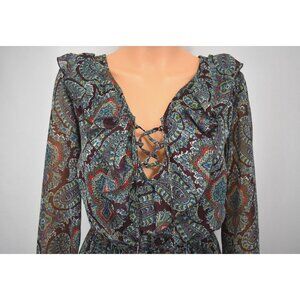 Xhilaration Lace Up Romper Size Small Boho Chic Romantic Western Paisley Ruffled