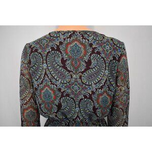 FEATURES: Paisley Print, Deep V-Neck Lace Up, Ruffled Neckline & Sleeves, Flowy, Lightweight