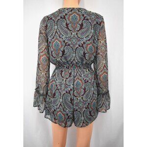 Xhilaration Lace Up Romper Women's Size Small Boho Chic Romantic Western Paisley Ruffled
