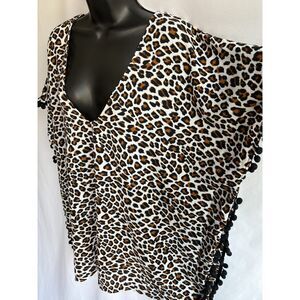 Xhilaration Leopard Cheetah Pom Pom Trim Kaftan Swim Cover Batwing Sleeve Size M