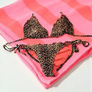 Xhilaration Leopard Print Bikini – Size M – Triangle Top & Scrunch Back Bottoms