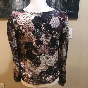 Xhilaration Long Sleeved Sheer Floral Top with Exposed Zipper Back-Size M