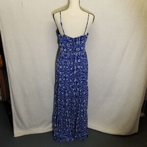 Xhilaration Womens Size Medium Dress Maxi Length Blue Bird of Paradise Chiffon Partially Lined Boho Cottagecore Whimsy Fairy Bohemian Wedding Guest