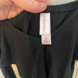Good used condition. Target’s Xhilaration brand black shorts romper. Adjustable spaghetti straps, ruffle, and cream colored crochet detail at front. Elastic at back and waistband for an easy fit. Cute for summer vacations or as a swimsuit coverup!