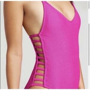 Xhilaration Mesh One Piece Swimsuit Swimwear Bathing Strappy Ladder Sides Pink S
