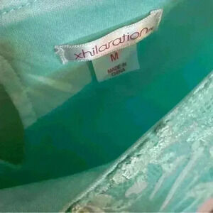 Xhilaration Mint Green Floral Print Lace Overlay Dress Size Medium EUC