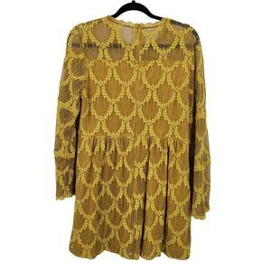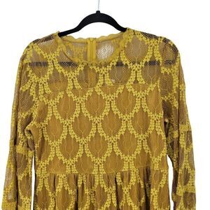 Xhilaration Mustard Yellow Lace Bell Sleeve Dress L Tea Length Retro 70s Hippie
