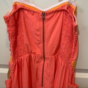 Xhilaration Strapless ‘Challis’ Dress • Coral / Orange, color block style dress has 2 front patch pockets, a zipper closure for the back and rubber lined on the chest to help with it being strapless and stay in place!