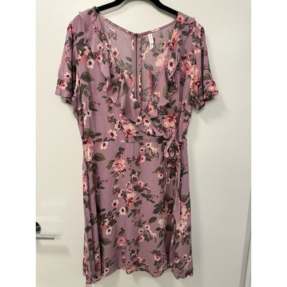 Xhilaration NWT Purple Floral Wrap Short Sleeve Mini Dress Size Large