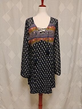 Xhilaration Navy Blue Chiffon Lace Detail Dress Size Medium NWT