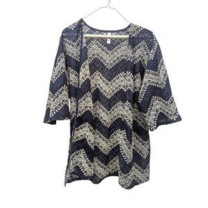 Xhilaration Navy Blue Cream Chevron Knit Cardigan Lightweight Medium Large M/L