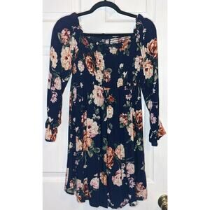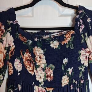 Xhilaration Navy Blue Peasant Ruffle Long Sleeve Pink Floral Spring Dress M