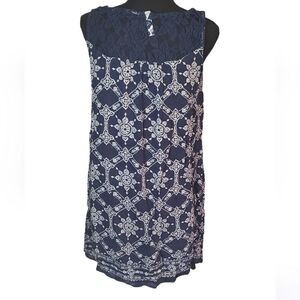 Xhilaration Navy Blue Printed Mini Dress. Sleeveless. Lace neckline. Lightweight. Great for summer! Excellent condition. Size small.