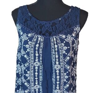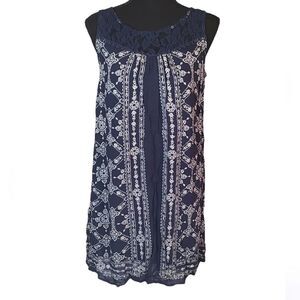 Xhilaration Navy Blue Printed Lace Mini Summer Sun Dress Small