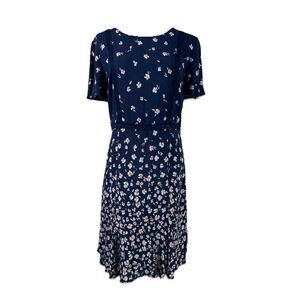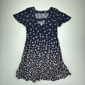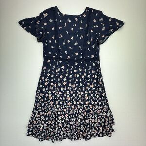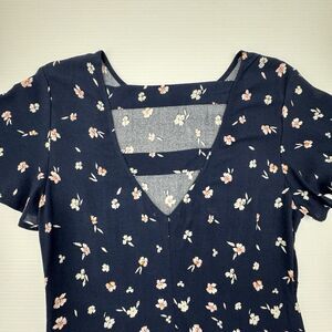 Xhilaration Navy Blue Small Floral Print Dress with Short Sleeves in size Small and has a side zipper closure.