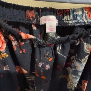 Xhilaration Navy Floral Off the Shoulder Top Size Large