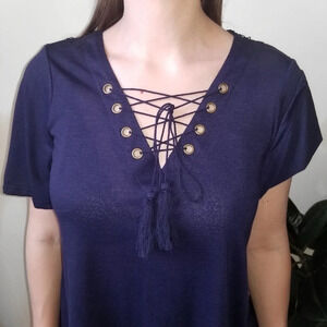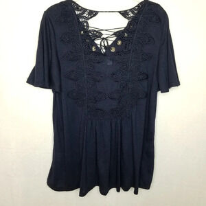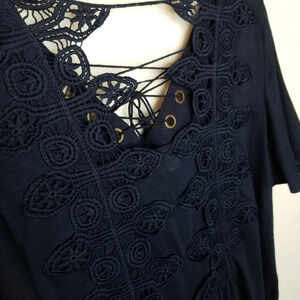 Xhilaration Navy V Neck Embroided Lace Tank Top Medium Boho Lightweight Tie up